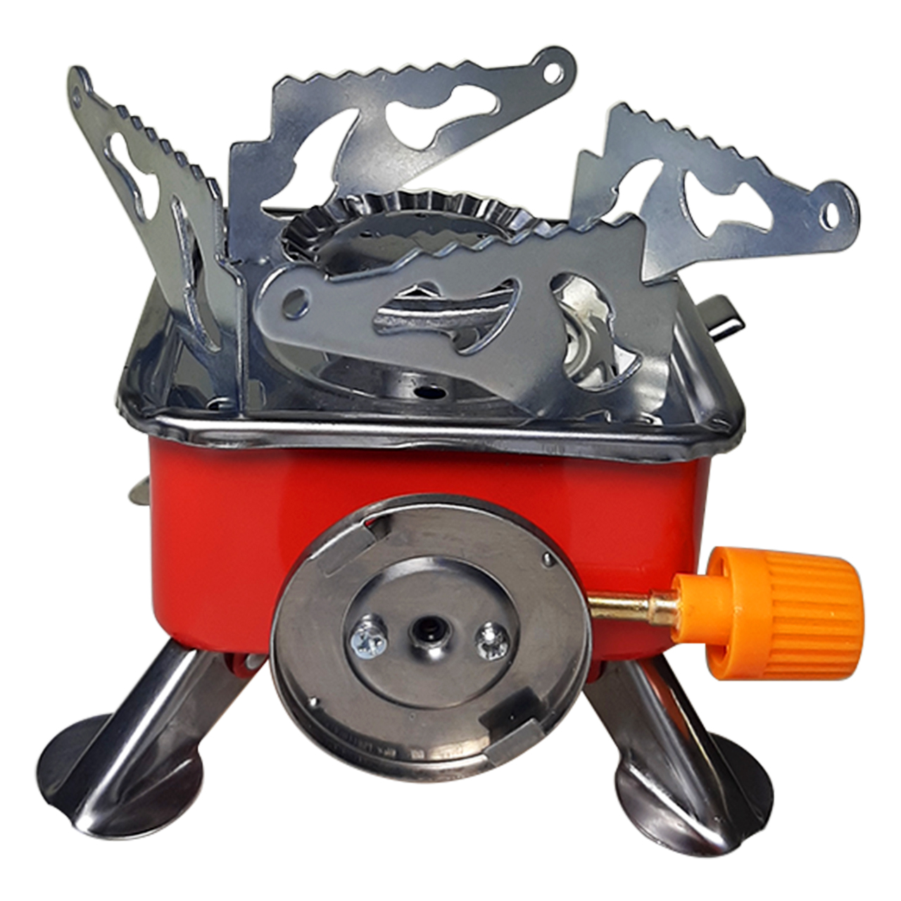 Раскладные лапки горелки позволяют использовать различную по диаметру посуду.
