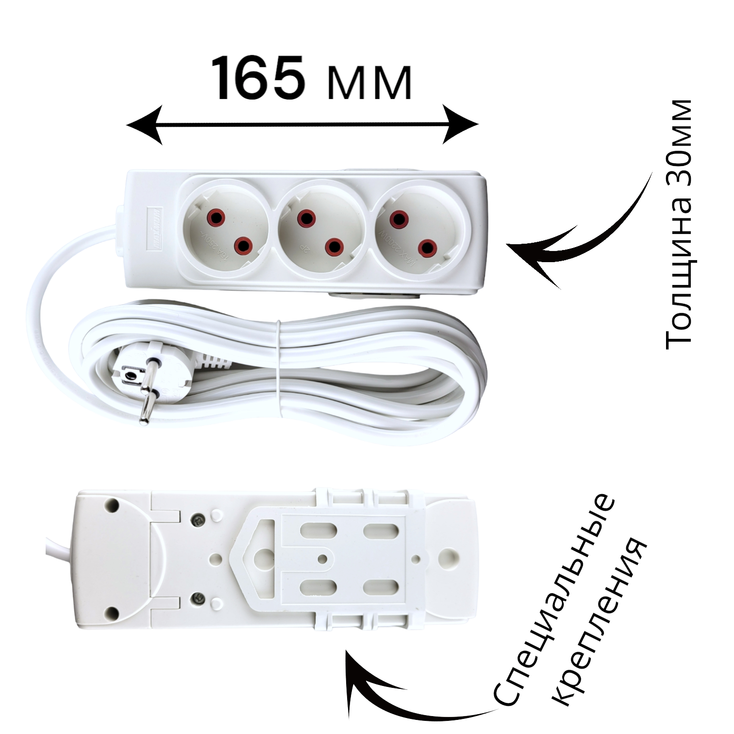 Модель с тремя точками подключения подходит для любого внутреннего помещения и позволяет одновременно подсоединять сразу несколько электрических устройств.