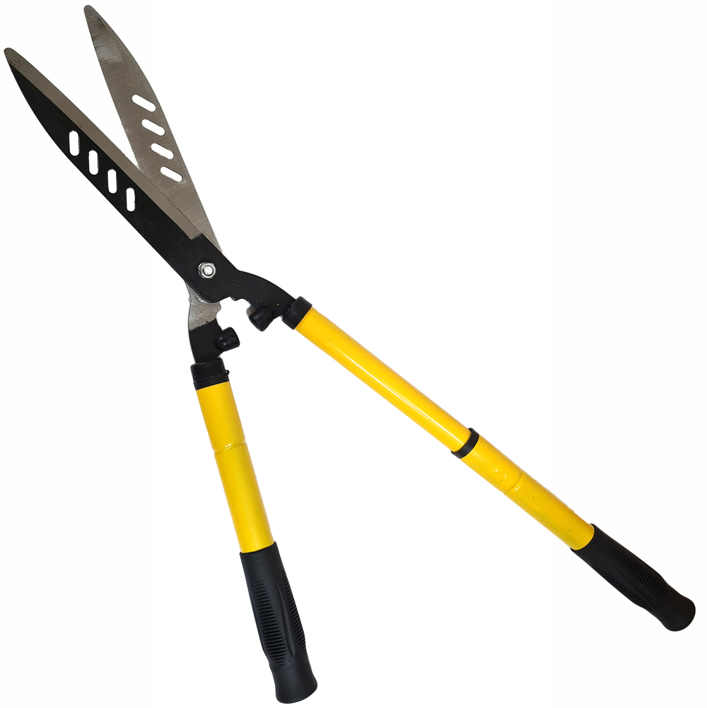 Кусторез телескопический способен перерезать достаточно твердые предметы. Форма стальных лезвий идеально подходит для обработки кустарников. Ребристые резиновые рукоятки обеспечивают надежное сцепление с ладонями, не давая им проскальзывать.
