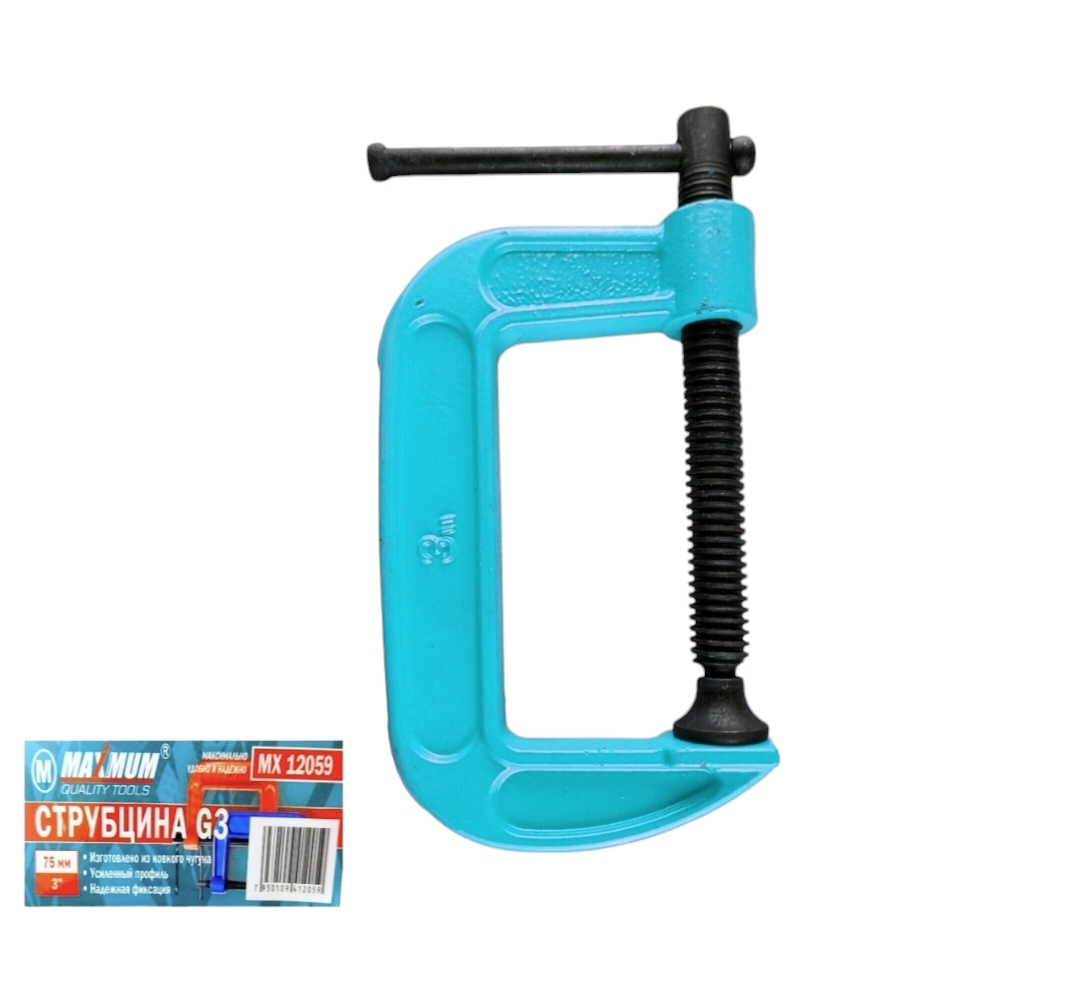 Струбцина G-образная, 75 мм, Maximum предназначена для крепления деталей на верстаке или станке, а также при склеивании тонких деревянных и пластиковых материалов.