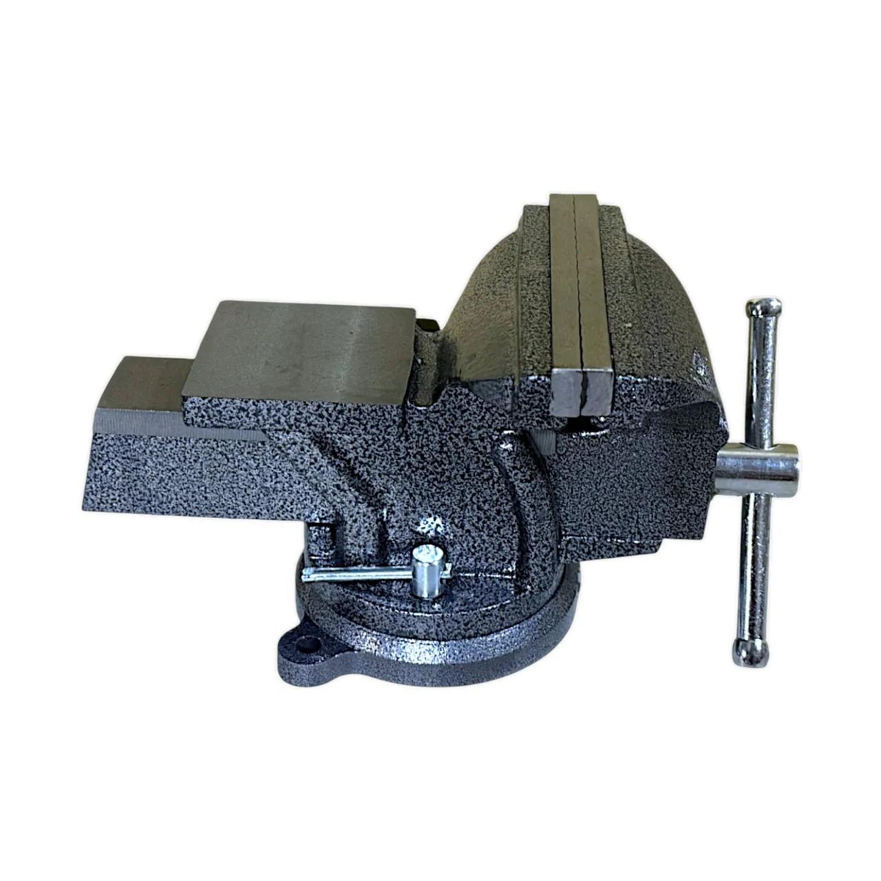 Прочная конструкция – массивные чугунные тиски с поворотным основанием (360°) и двойными фиксаторами обеспечивают быстрое и точное позиционирование заготовки.