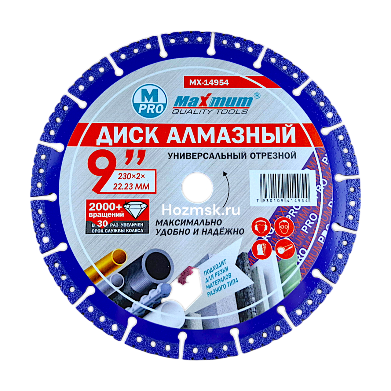 Универсальный отрезной диск "MAXIMUM" 230x2x22,23 мм (9") — отличное решение для резки композитных материалов, тонколистового металла, плитки, кирпича, бетона и других строительных материалов.