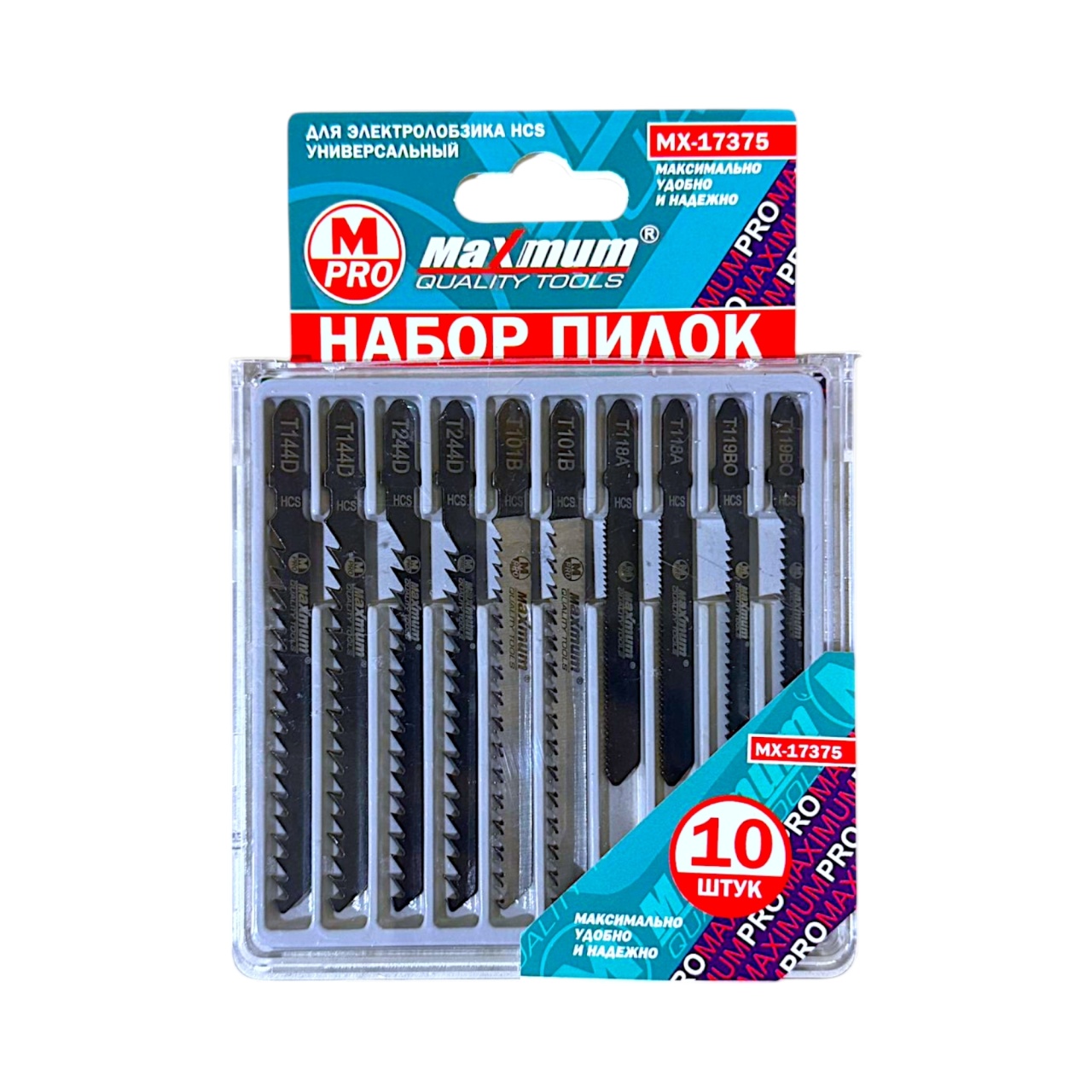 Универсальный набор пилок для электролобзика 10шт. от "Maximum Quality Tools" выполнен из HCS (High Carbon Steel )-высокоуглеродистой стали, которая хорошо справляется с мягкими материалами: деревом, ДСП, ДВП или пластиком.