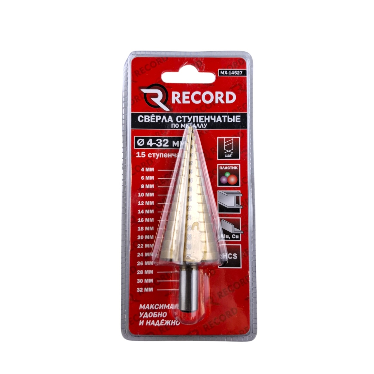 Быстрорежущее ступенчатое HSS сверло может обрабатывать металл, пластик, гипсокартон и даже дерево. Благодаря острому наконечнику с заточкой 118° оно с легкостью входит даже в самый твердый металл.